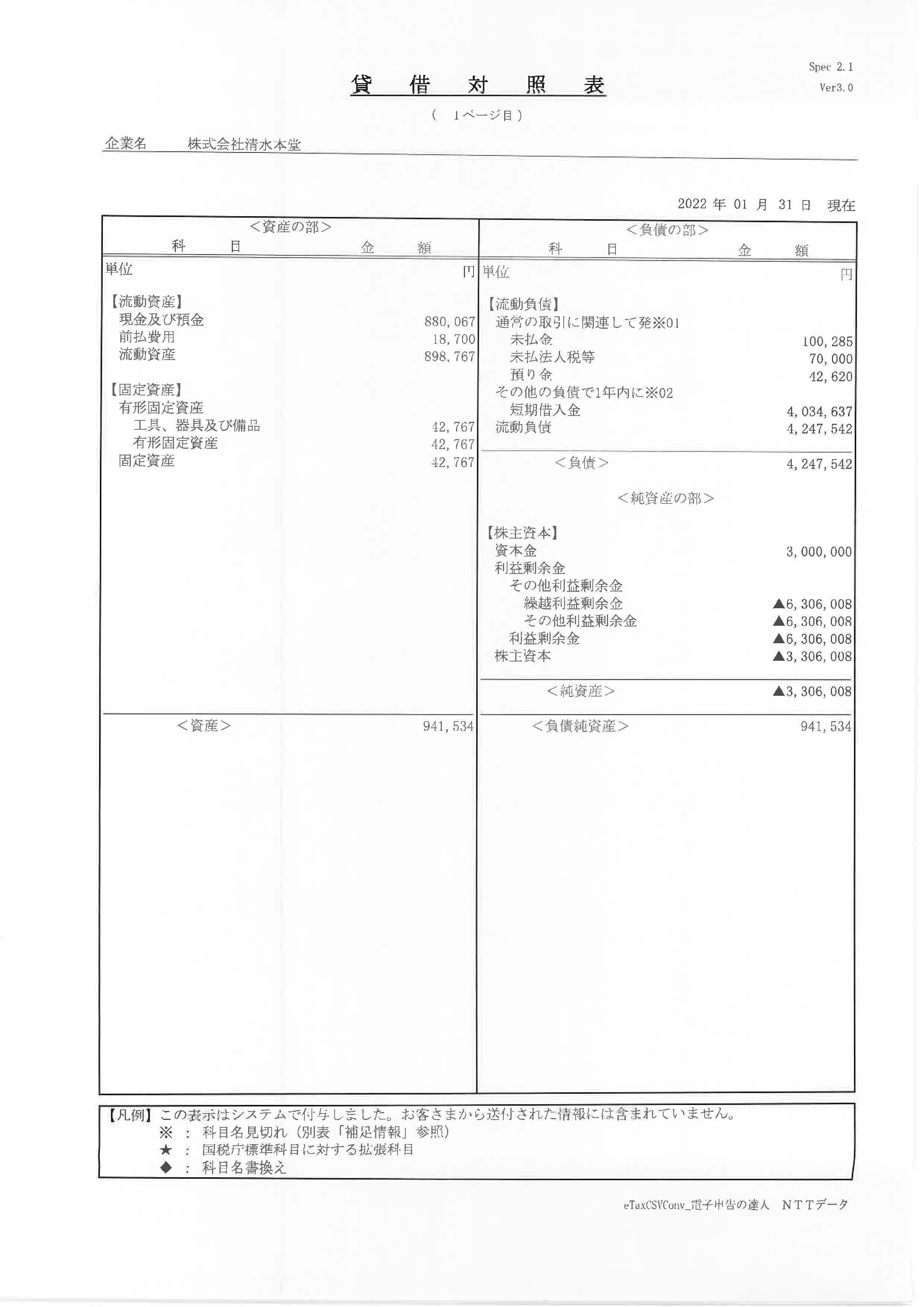 株式会社清水本堂第10期貸借対照表(決算公告)